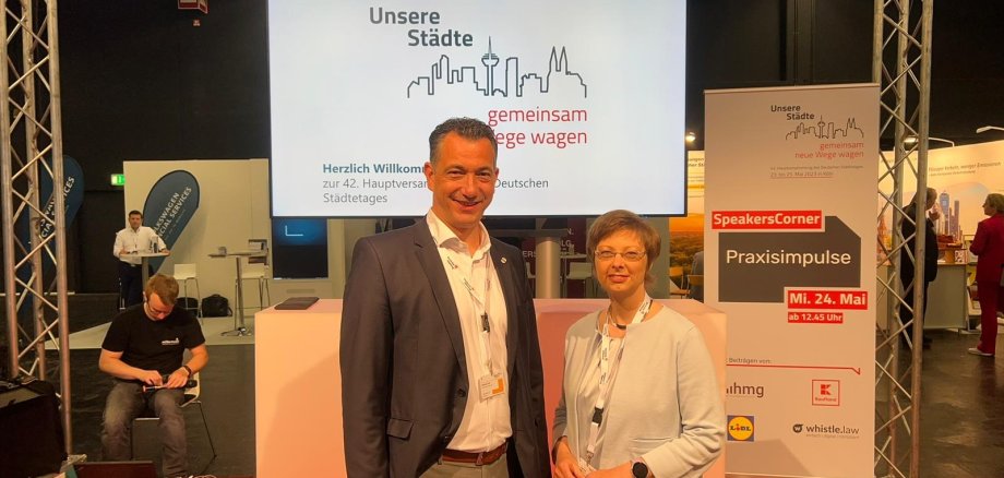Foto: OB Emanuel Letz und Stadträtin Claudia Eider als Delegierte der Stadt Bad Kreuznach auf der 42. Hauptversammlung des Deutschen Städtetags in Köln