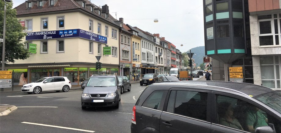 Archivbild: Die vielbefahrene Kreuzung Salinenstraße - Wilhelmstraße. Ziel der neuen Untersuchung war es, mögliche Entlastungseffekte durch eine neue Verbindung eingehender als bisher zu untersuchen.