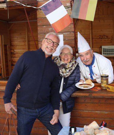 Den guten Umsatz am Bad Kreuznach-Stand auf dem deutsch-französischen Markt war auch einem ehrenamtlichen Dolmetscher-Ehepaar zu verdanken: Evelyne und Wolfgang Buir, die sich durch den Schulaustausch Bourg-en-Bresse / Bad Kreuznach kennengelernt haben. Nach ihrem Studium zog sie nach Bad Kreuznach. Ihre Eltern hatten schon den Partnerschaftsaustausch Bourg-en-Bresse / Bad Kreuznach mit der Feuerwehr angefangen.