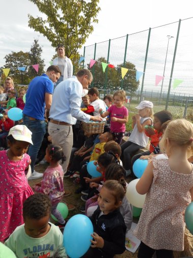 „Jedes Kind braucht eine Zukunft, hier finden die Kinder Rahmenbedingungen in denen ein guter Start gelingen kann.“ So eröffnete Mirko Kohl seine kurze Ansprache und überreichte feierlich den Winzenheimer Kirmesballon, sehr zur Freude des Leitungsteams bestehend aus Swetlana Michailow und Dagmar Roth. Auch Nils Wachner bedankte sich beim Team herzlich für das Engagement und nutze die Gelegenheit Kinder, Eltern und das Team besser kennenzulernen.