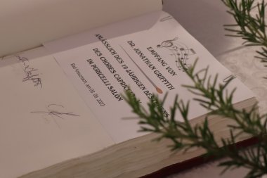 „Für unsere Stadt stellt dieser Besuch und die Leitung des Jubiläumskonzerts eine große Ehre und Auszeichnung dar. Über diesen kulturellen Austausch freuen wir uns sehr. Ich danke Herrn Dr. Griffith herzlich, dass er diese weite Reise auf sich genommen hat, um uns mit seiner musikalischen Expertise zu bereichern“, sagte Oberbürgermeister Letz in seiner Begrüßungsrede. Als einer der ersten prominenten Persönlichkeiten, die in Bad Kreuznach weilten, trug sich der US-Dirigent im Anschluss in das neue Gästebuch der Stadt ein.