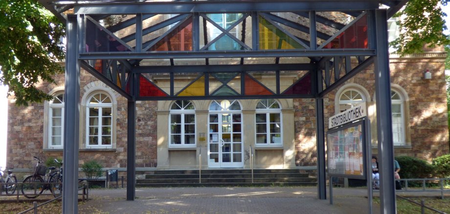 Archivfoto: Der Haupteingang der Stadtbibliothek Bad Kreuznach in der Kreuzstraße
