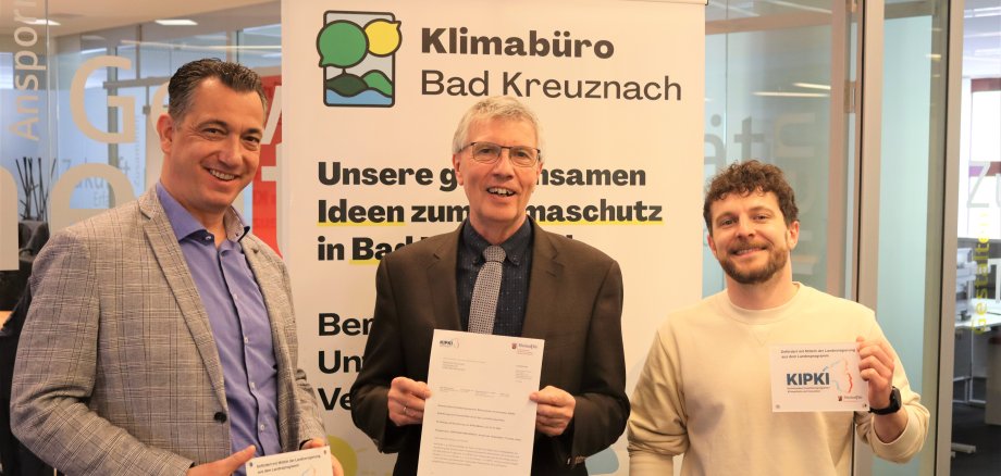 „Kommunen kommt beim Klimaschutz eine Schlüsselrolle zu. Hier wird geplant, genehmigt und umgesetzt. Hier finden Diskussionen mit den Bürgerinnen und Bürgern statt, was die Attraktivität eines Ortes erhöht. Dabei sind die Kommunen selbst die Experten und wissen, was bei ihnen umsetzbar ist und einen möglichst großen Nutzen sowohl für die Bürgerinnen und Bürger als auch für das Klima hat. Deshalb hat die Landesregierung das Kommunale Investitionsprogramm Klimaschutz und Innovation, kurz KIPKI, mit insgesamt 250 Millionen Euro auf den Weg gebracht. Hier kann jede Kommune selbst aus einem Maßnahmenkatalog auswählen, was für sie passend ist. Pro Einwohnerin und Einwohner gibt es rund 44 Euro, die sich Landkreis und Verbandsgemeinden aufteilen. Für die Stadt Bad Kreuznach bedeutet das eine Summe in Höhe von 1.510.635,01 Euro“, so Klimaschutzstaatssekretär Erwin Manz.