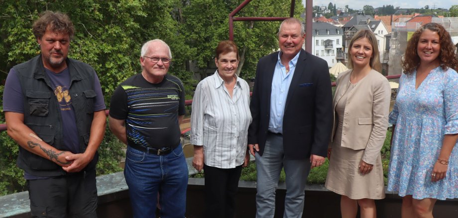 Foto: Helmut Kiefer (2.v.l.) und Margit Förster (3.v.l.) wurden mit vielen Dankesworten verabschiedet: Georg Bürger (links, Sachgebietsleiter Müllabfuhr und Straßenreinigung), Bürgermeister Thomas Blechschmidt, Geschäftsleitung Nathalie Herberger (2.v.r.) und Bauhofchefin Mareike Näher (r.).