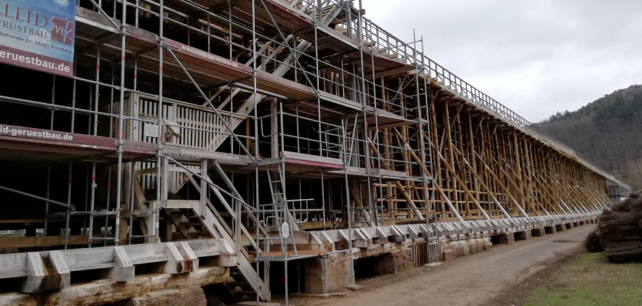 Fotos: Die Gesundheit und Tourismus für Bad Kreuznach GmbH führt im Auftrag der Stadt umfangreiche Sanierungsarbeiten am Gradierwerk 4 (neben den Tennisplätzen) im Salinental durch.