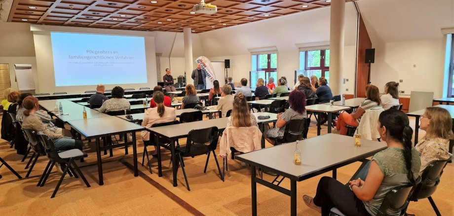 Birnbaum bot einen materiell-rechtlichen und prozessualen Einblick in die Arbeit des Familiengerichts aus der Perspektive der Pflegeeltern. Er beleuchtete die gesetzlichen Grundlagen und Rechtsbegriffe und führte die teilnehmenden Pflegeeltern durch einen möglichen Pflegeverlauf. Dabei ging er auf den Einsatz, die Aufgaben und das Ende der Maßnahme „Pflegeeltern“ ein und stellte die Bedeutung dieser Hilfe und die Rechte der Pflegeeltern in den Mittelpunkt.