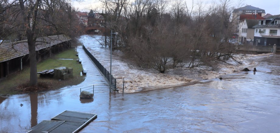Foto: Das jüngste Hochwasser in Bad Kreuznach Anfang Januar am Mühlenwehr. Foto: Isabel Gemperlein