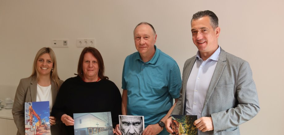 Foto: Von den Fotos, mit denen sich der neue ehrenamtliche Stadtfotograf Michael Schneider (2.v.r.) bewarb, sind Nathalie Herberger (links), Franziska Blum-Gabelmann und Emanuel Letz begeistert.