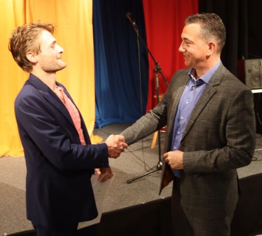 Der mit 500 Euro dotierte Sonderpreis ging an Jannik Rodenwaldt und Paul Heinken mit ihrem „Collectif Blamage“. Die beiden Künstler wurden für ihre musikalische Performance-Lesung „Kohlhaas geschlagen“ ausgezeichnet, mit der sie seit Mai 2023 erfolgreich durch Deutschland touren. „Ihre Arbeit zeigt eindrucksvoll, wie Kunst aktuelle gesellschaftliche Fragen aufgreifen und zum Nachdenken anregen kann“, betonte Letz in seiner Ansprache.