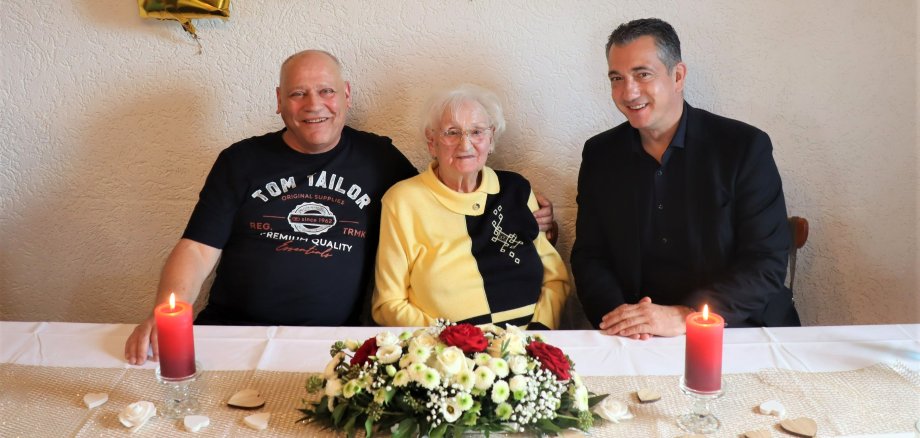 Foto: OB Emanuel Letz gratulierte Elisabet Weyerhäuser zum 100. Geburtstag. Mit im Bild: Sohn Volker Weyerhäuser (links). Foto: Isabel Gemperlein