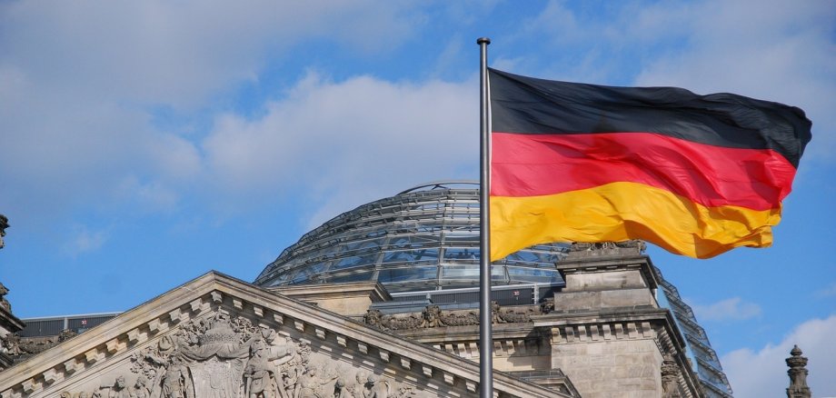 Symbolfoto: die Bundesflagge vor dem Reichstagsgebäude in Berlin, Pixabay.com