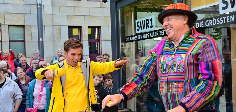 Foto: So wie Bad Kreuznachs Ehrenbürger Dr. André Borsche hatten viele Menschen auf dem Kornmarkt ihren Spaß. Links im Bild SWR-Moderator Veit Berthold. Foto: SWR