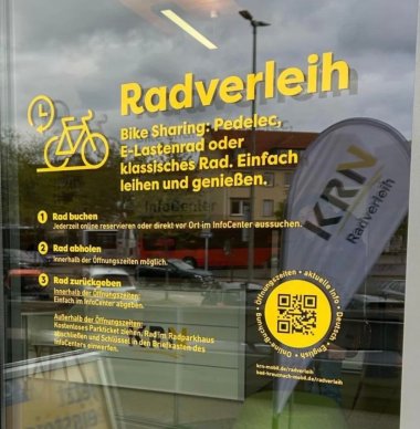 Nach dem Bau des Fahrradparkhauses bieten sich nun neue Möglichkeiten an: Die Räder können nun an einer zentralen Stelle sowohl gewartet als auch ausgeliehen und rund um die Uhr zurückgebracht werden: einfach Parkhauskarte ziehen, Rad abschließen, Schlüssel in den Briefkasten des Mobil- und Infopunktes werfen. Mit der Übernahme des Geschäftsfeldes durch die KRN konnte diese Wunsch der Stadt nun verwirklicht werden, um den Kundinnen und Kunden eine optimale Anbindung an Bus und Bahn sowie die Möglichkeit der zeitlich flexiblen Rückgabe der Räder anbieten zu können.
