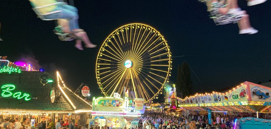 Archivfoto: Das Festgelände bei Nacht mit dem Jahrmarktsklassiker, dem Europarad. Foto: Isabel Gemperlein