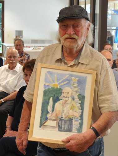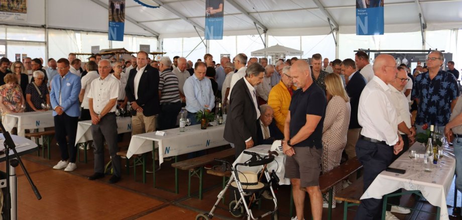Großes Foto: Die Gäste des kommunalpolitischen Frühschoppens der Stadt Bad Kreuznach im Naheweinzelt erhoben sich bei einer Gedenkminute zu Ehren von Karl-Rudolf Hornberger (de Hombes) von ihren Plätzen. Foto: Hansjörg Rehbein