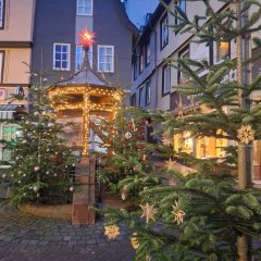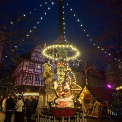 Den großen Baum am Bocksbrunnen in der Neustadt spendete erneut Birgit Kossmann, Geschäftsführerin der Jacob-Verwaltungsgesellschaft. Der Altstadtverein steuerte wie gewohnt die Lichterkette bei.