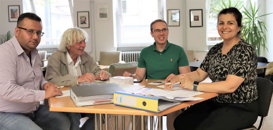 Foto: Zillan Dauod im Gespräch mit den Beiratsmitgliedern Nazah Alkhaled, Hartmut Lind und Marvin Runggas (v.l.). Foto: Hansjörg Rehbein