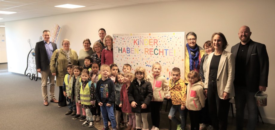 Archivfoto: Ein von Kindern gebasteltes Plakat "Kinder haben Rechte" wurde im Herbst 2024 an Oberbürgermeister Emanuel Letz übergeben. Seitdem hängt das Kunstwerk im Sitzungssaal des Rathauses. Foto: Hansjörg Rehbein