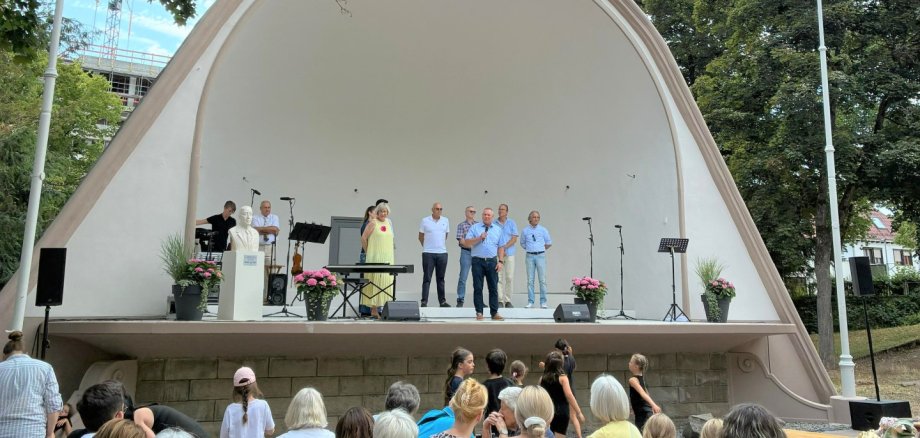 Ortsvorsteherin Birgit Ensminger-Busse erwähnte in ihrer Moderation, dass der Stadtteil auf zwei besondere Jubiläen in diesem Jahr blicken kann. Zum einen auf „150 Jahre Kurhaus nebst Konzertmuschel“, zum anderen auf „120 Jahre Verleihung des Titels ,Bad‘“. Insofern sei es sehr zu begrüßen, dass mit Hilfe der Stiftung Rheingrafenstein, Max und Herta Kuna, die fast baufällige Konzertmuschel umfassend renoviert wurde und nun als Bühne für verschiedene Veranstaltung wieder genutzt werden kann.