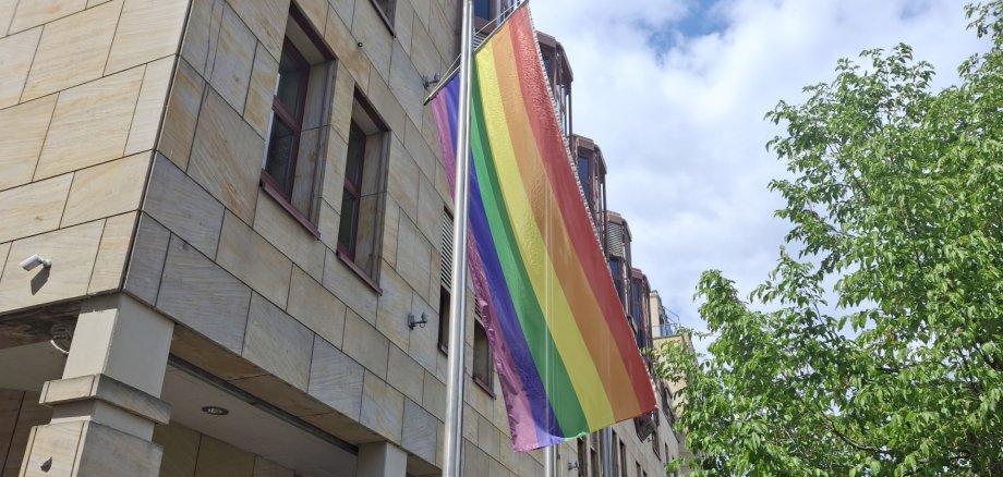 Foto: Da der IDAHOBIT dieses Jahr auf einen Samstag fiel, wehten in Bad Kreuznach die Regenbogenfahnen von Freitag bis Montagmorgen. Foto: Isabel Gemperlein