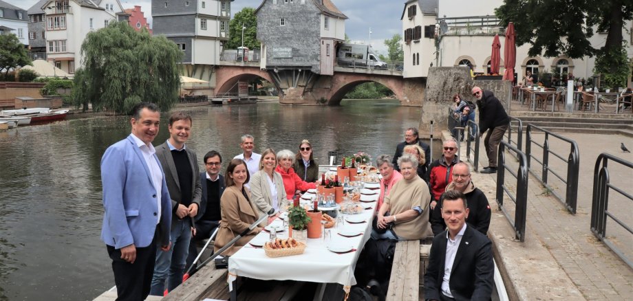 Die Delegation genoss zudem eine Rundfahrt auf der Nahe zusammen mit Mitgliedern des Partnerschaftsausschusses und des Fördervereins für Städtepartnerschaften. Durch den kundigen GuT-Geschäftsführer Michael Vesper lernten die Gäste auf der Bootsfahrt die Geschichte der Stadt und die Hintergründe des Bad Kreuznacher Hochwasserschutzes kennen, der sich seit mehr als 20 Jahren bewährt hat. Das Weinanbaugebiet Nahe und die Besonderheiten dieser traditionsreichen Weinregion wurden durch Naheweinmajestät Laura Ludwig kurzweilig vermittelt.