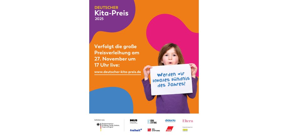 Alle können dabei sein, wenn das Votum der Jury verkündet wird, denn die Veranstaltung wird im Livestream unter www.deutscher-kita-preis.de übertragen.