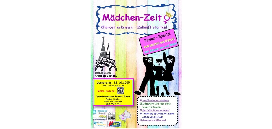 In Kooperation mit der Gleichstellungsbeauftragten des Landkreises Bad Kreuznach, dem Internationalen Bund (IB), der Koordinierungsstelle Jugendberufsagentur Plus, und der Kunstwerkstatt Bad Kreuznach bietet der Nachmittag vielfältige Informationen, Austauschmöglichkeiten und kreative Angebote.