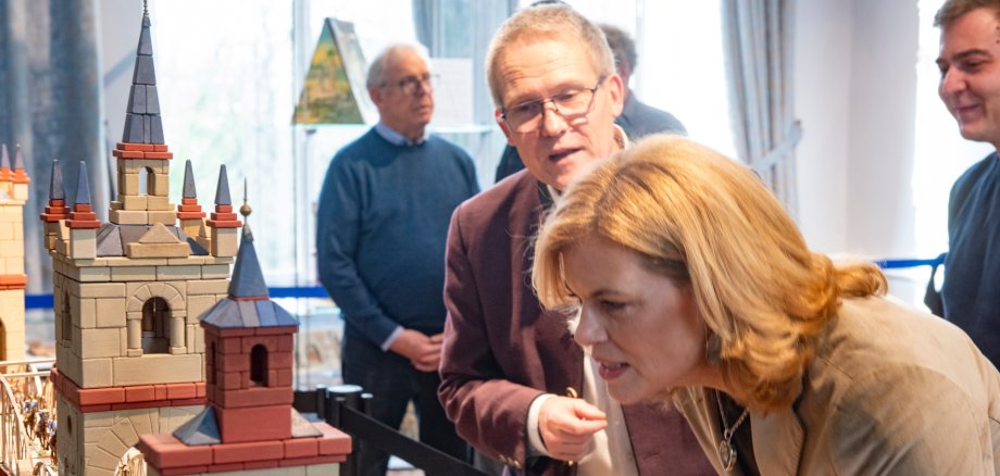Besonders beeindruckt zeigte sich die Bundestagspräsidentin von der neuen Sonderausstellung „Steine, die Geschichte schreiben – die Welt der Anker-Bausteine“, die faszinierende Einblicke in die Geschichte des historischen Spielzeugs und die begleitenden Werbematerialien gewährt.