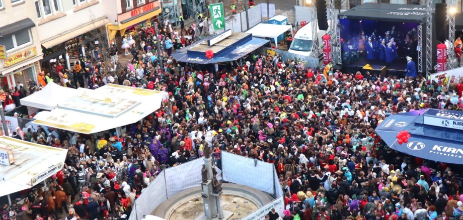 Foto oben: Der Kornmarkt voller Narren und in der Rossstraße sah es nicht anders aus. Foto: Isabel Gemperlein