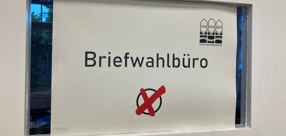 Archivfoto: Hinweisschild "Briefwahlbüro" Stadt Bad Kreuznach, Foto: Isabel Gemperlein