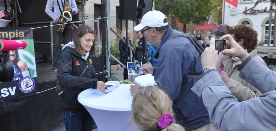 Foto: Der Olympiasiegerin von Tokio 2021 bereitete die Stadt Bad Kreuznach einen großen Empfang. Ricarda Funks Autogramme waren sehr begehrt. Archivfoto: Hansjörg Rehbein