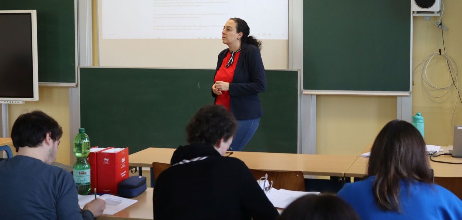 Foto oben: Nicola Trierweiler unterrichtet Staats-, Verfassungs- u. Europarecht.