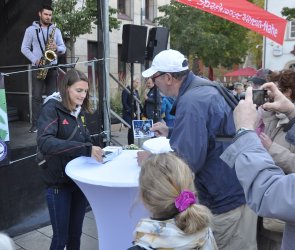 Die Olympiasiegerin schrieb auf dem Kornmarkt fleißig Autogramme
