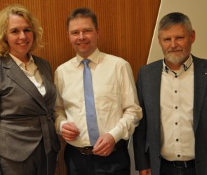 OB Heike Kaster-Meurer mit Christoph Nath und Vorgänger Dietmar Canis (rechts)