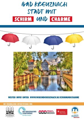 Juni: „WirsindKreuznach“ nennt sich eine Gruppe Gewerbetreibender, die im Juni die Aktion „Bad Kreuznach - Stadt mit Schirm und Charme“ ins Leben ruft. Auf der Suche nach einer corona-konformen Möglichkeit die liebenswerte Stadt Bad Kreuznach für den Sommer herauszuputzen, kam die Idee auf, 400 dekorative Schirme in den Stadtfarben gelb, blau und weiß sowie rote Schirme als Zeichen der Liebe zu Bad Kreuznach produzieren zu lassen und an die für die Weihnachtsdeko vorgesehenen Leinen in der Innenstadt aufzuhängen.