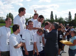 Oberbürgermeister Andreas Ludwig bei einer Siegerehrung im Moebusstadion