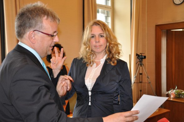Thoma Blechschmidt wird als Bürgermeister von OB Dr. Heike Kaster-Meurer vereidigt.