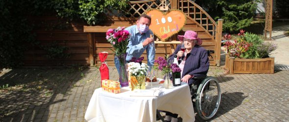 Am 29. April durfte Anneliese Groth im Seniorenheim St. Antoniushaus in Bad Münster am Stein-Ebernburg ihren 100. Geburtstag feiern. Am Nachmittag stieß sie im Garten des St. Antoniushauses mit Einrichtungsleiter Volker Specht mit einem Gläschen Traubensaft an. Eine ganz besondere Überraschung hatten ihre beiden Töchter Ina-Sibylle Karo und Dagmar Groth mit ihren Familien für sie vorbereitet. Sie standen mit drei Posaunenchorbläsern aus Bad Kreuznach am Zaun des Gartens und grüßten aus der leider notwendigen Distanz. Fünf wunderschöne Lieder spielten sie für die Jubilarin. Beim bekannten geistlichen Lied „Nun danket alle Gott“ sang die Jubilarin textsicher mit und war sehr gerührt über das Geburtstagsständchen.