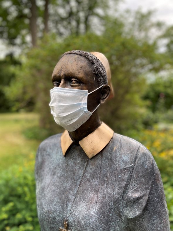 Bereit zum Dienst am Nächsten: Diakonissen-Denkmal mit Schutzmaske