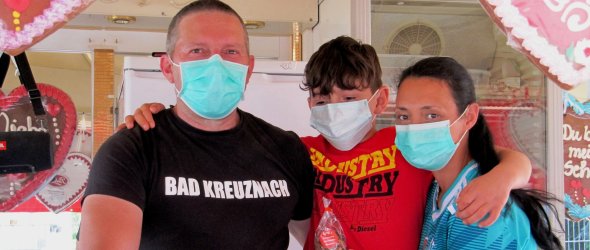 Elle Schaller machte für die Corona-Dokumentation des Stadtarchivs mehrere Fotos, u.a. auch von den drei „Maskierten“ Peter, Marlon-Peter und Tamara Gräff. Über die gute Resonanz bei den freuen sich die Gräffs, die aus einer alten Bad Kreuznacher Schaustellerfamilie stammen. „Meine Eltern, Eitel und Ursula Gräff, haben uns dies erst ermöglicht, in dem sie uns dieses Grundstück an der Rüdesheimer Straße überließen“, bedankt sich Sohn Peter auf diesem Wege.