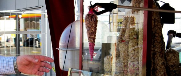 Der Duft von gebrannten Mandeln liegt in der Luft. „Dem konnte mein Mann nicht widerstehen“. Elle Schaller freute sich über das Tütchen, das er ihr mitbrachte. Rolf Schaller hatte auf dem Betriebsgelände der Firma Gräff den Verkaufswagen voller Süßigkeiten wie den Klassiker Popcorn entdeckt. Die Stadt hat den Gräffs den Straßenverkauf genehmigt, natürlich unter Einhaltung der Corona-Schutzbestimmungen. So bekam Schaller wegen der Abstandregelung seine Tüte mit einer Stange gereicht.