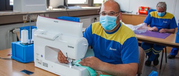Auch Männer nähten fleißig: Michelin produzierte Schutzmasken für Mitarbeiter