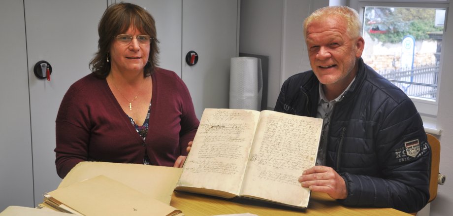 „Das Dokument war in einem bedauerlichen Zustand, da es vor der Eingemeindung unachtsam gelagert worden war und dabei wahrscheinlich einen Wasserschaden erlitten hat“, erläutert Stadtarchivleiterin Franziska Blum-Gabelmann bei der Präsentation des neu hergerichteten Buchs zusammen mit dem Planiger Ortsvorsteher Dirk Gaul-Rosskopf (Foto). Die wertvolle Archivale war daher bisher für Nutzer des Stadtarchivs gesperrt – ein Umstand, der nun glücklicherweise ein Ende hat. „Wir haben die Finanzierung gerne übernommen, denn das Buch erzählt vieles über die Geschichte von Planig, das nun wieder für die Öffentlichkeit zugänglich ist“, sagt Gaul-Rosskopf.