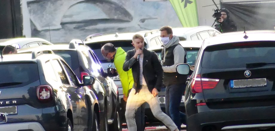 Am 2. Autokinoabend traten Vincent Groß - Foto- (geb. 1996, Sänger aus der Schweiz) und danach Michelle (geb. 1972, deutsche Sängerin) auf. Beide Künstler wurden von der SWR Bühne gefilmt und auf eine 16 x 8 Meter Leinwand projiziert. Die Tonübertragung erfolgte über die UKW Frequenz 95,8 MHZ im Autoradio. Die Autokennzeichen verrieten den Einzugsbereich der Besucher, die neben Bad Kreuznach aus Alzey, Bamberg, Birkenfeld, Koblenz, Main-Kinzig, Mayen, Rockenhausen, Vogelsbergkreis, Westerwald und Wiesbaden kamen. Die Autos der ersten Reihen hatten direkten Blickkontakt zur Live-Bühne, aber dies tat der allgemeinen „Feierstimmung“ keinen Abbruch. Im Gegenteil: Als hätten sich die Besucher abgesprochen, spielte sich rasch ein, daß Applaus signalisiert wurde mit Einschalten der Warnblinklichter, Emotionen zu den Künstlern mit Konfettiraketen oder dem Schwenken von Leuchtstäben kundgetan wurden. Ein Gast hatte eine Papp-Hand auf einem Holzstab befestigt mit dem Ziel, den Künstlern zuwinken zu können. Endete ein Song oder der Künstlerauftritt, gab es wie auf Befehl ein lautstarkes Hupkonzert. Ein Blick in manche Autos verriet: Die Besucher störte es nicht im Auto zu Schunkeln, zu Singen und zu Feiern. Da kam echte Partystimmung auf, die oft ihren Höhepunkt erreichte, wenn die Künstler die Bühne verließen und zwischen den Autos tanzend und singend auftraten.