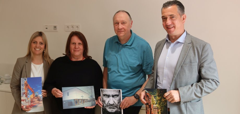 Foto: Von den Fotos, mit denen sich der neue ehrenamtliche Stadtfotograf Michael Schneider (2.v.r.) bewarb, waren Nathalie Herberger (links), Franziska Blum-Gabelmann und Emanuel Letz begeistert.