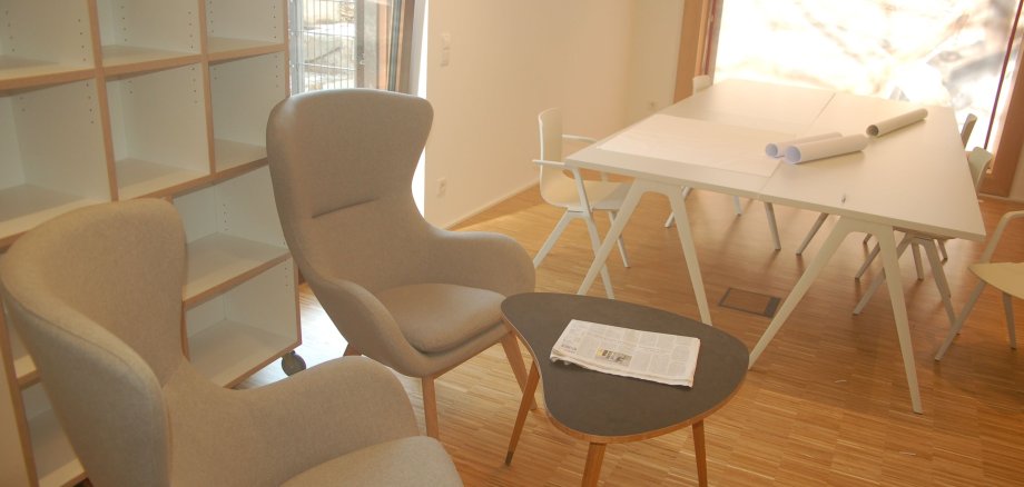 Foto: Die Sitzecke ist gerichtet. Dort können Sie bquem Zeitung oder in Geschichtsbüchern lesen.