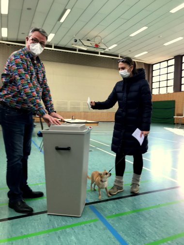 Nach dem Schließen des Wahllokals um 18 Uhr ging`s zügig zum Auszählen der Stimmen. Ich war erleichtert, dass wir um 19.40 Uhr das Ergebnis melden und dann alles einpacken konnten.