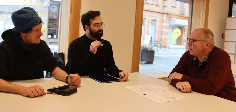 Foto: Marc Bremmer und Yulyan Ilev im Gespräch mit Stefan Vinke. Foto Hansjörg Rehbein