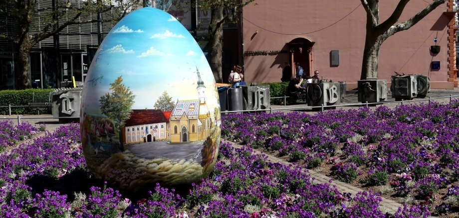 Foto: Gastgeschenk aus Zagreb: Ein 120 Kilogramm schweres Kunst-Osterei auf dem Liebfrauenplatz am Mainzer Dom