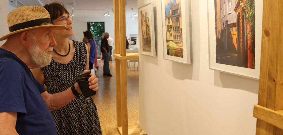 Foto: Fred Lex und Elisabeth Werden-Troll waren von den Fotos von Michael Schneider angetan. Foto: Hansjörg Rehbein